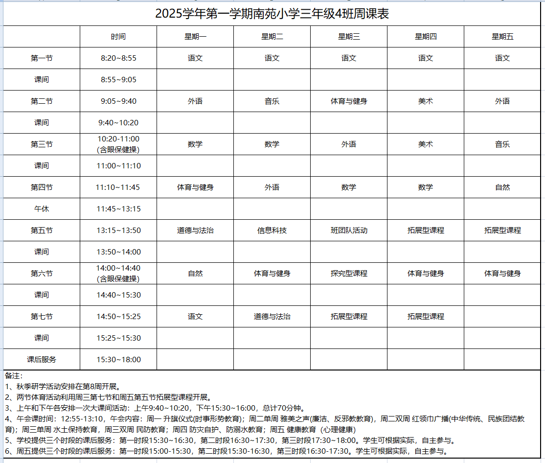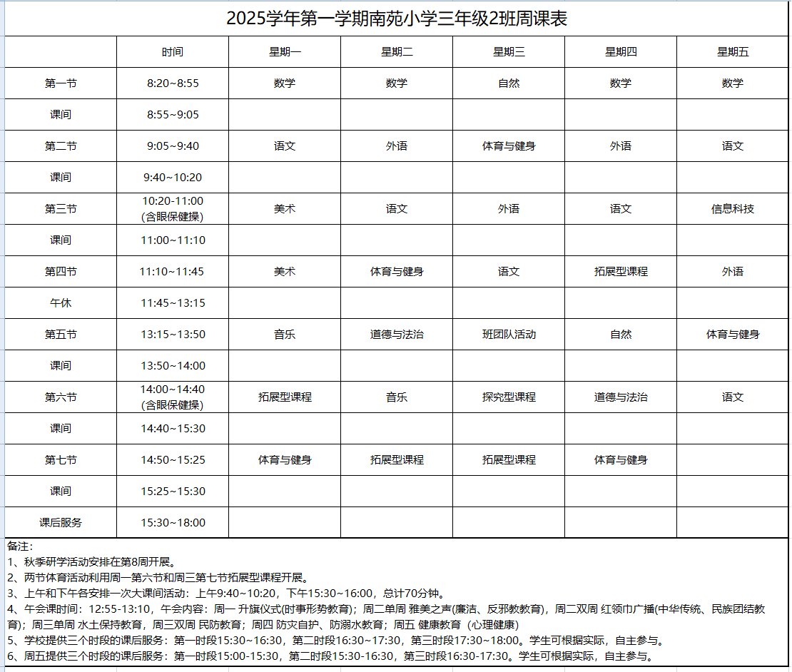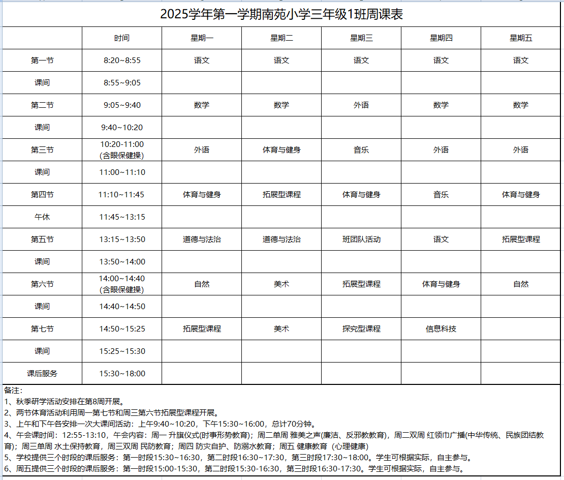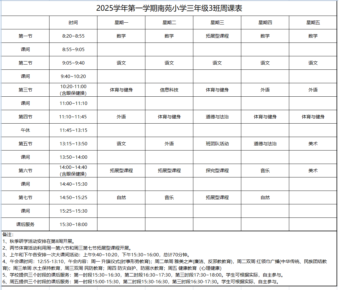 2025学年第一学期周课表(三年级)